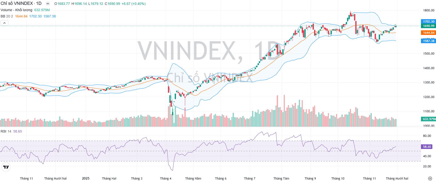 Về kỹ thuật, việc chỉ số VN-Index tăng điểm ngay vùng cản 1.700 điểm nhưng độ rộng thị trường và thanh khoản đều suy yếu phản ánh trạng thái “phục hồi kỹ thuật nhưng chưa đủ nội lực”, hình thành phân kỳ giữa chỉ số và mặt bằng cổ phiếu, hàm ý rủi ro điều chỉnh kỹ thuật hoặc giằng co tích lũy quanh vùng 1.680 - 1.700 là kịch bản cần được ưu tiên hơn so với kỳ vọng bứt phá ngay.