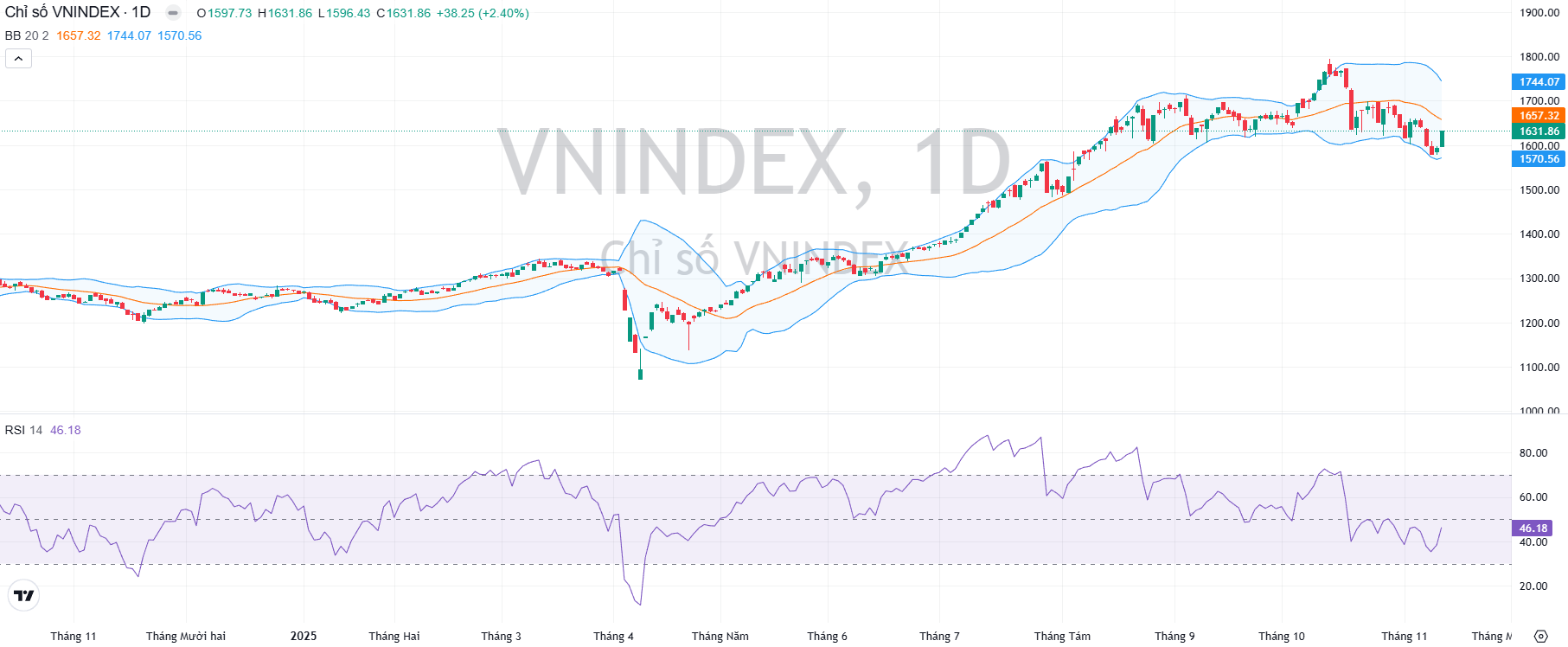 Thị trường phiên hôm ghi nhận một phiên phục hồi ấn tượng khi VNI bật tăng trở lại trên ngưỡng 1.600 điểm và đường MA100, biến hai phiên giảm trước đó dưới 1.600 thành một “bear-trap”. Và mặc dù việc chỉ số đánh mất mốc hỗ trợ quan trọng trong hai phiên đầu tuần nhưng không xuất hiện lực bán tháo, khi mà thanh khoản khớp lệnh HSX+HNX chỉ quanh 19,6 nghìn tỷ đồng/ngày, cho thấy áp lực cung thực tế khá yếu, margin không cao và tâm lý nhà đầu tư sẵn sàng chấp nhận rủi ro hơn.