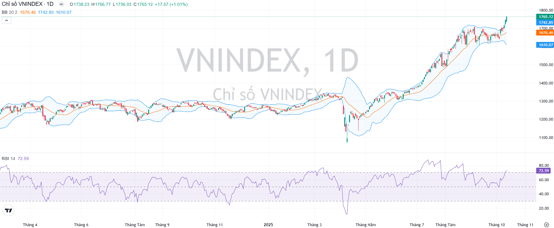 Về kỹ thuật, dù vẫn tồn tại lo ngại rằng nếu các trụ dừng đà tăng thì chỉ số chung có thể chịu áp lực điều chỉnh, nhưng khả năng “đổi trụ” để duy trì xu hướng vẫn được đánh giá cao. Ngoại trừ VIC và VHM tăng mạnh, phần lớn các mã trụ khác vẫn trong trạng thái tích lũy, giúp thị trường giữ nền ổn định và tiếp tục duy trì cấu trúc kỹ thuật “đẹp”.