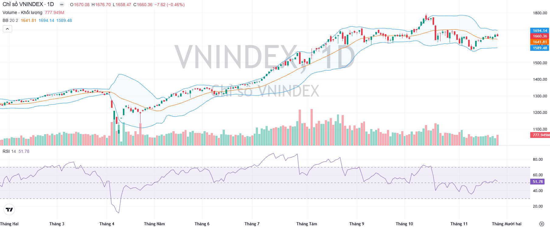 Do đó, chiến lược phù hợp là tiếp tục giữ quan điểm thị trường đang trong pha dao động điều chỉnh bình thường, coi các nhịp giảm hiện tại là quá trình làm sạch cung ngắn hạn và tạo nền cho giai đoạn kế tiếp dự kiến có chuyển biến tích cực hơn từ khoảng giữa tháng 12. Anh chị vẫn hạn chế sử dụng đòn bẩy cao, chủ động cơ cấu những vị thế ngắn hạn kém hiệu quả, đồng thời tận dụng nhịp rung lắc để từng bước tích lũy thêm các cổ phiếu cơ bản tốt với tầm nhìn dài hơn, khi áp lực hiện tại mang tính cung - cầu ngắn hạn nhiều hơn là rủi ro vĩ mô hay hệ thống.